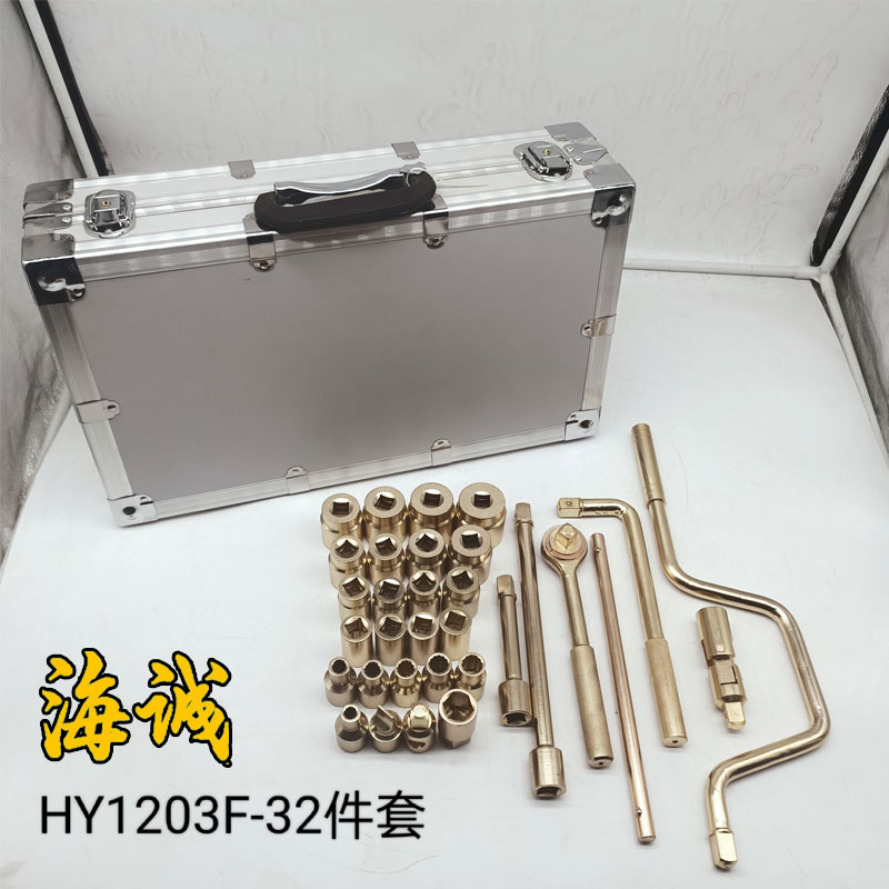 防爆32件套套筒用于在狹窄空間\位置特殊,活扳手和呆扳手均不能使用的空間;用于緊固和拆卸六角頭螺栓\螺母